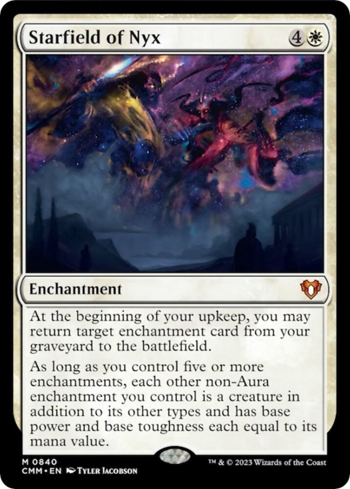 As long as you control five or more enchantments, each other non-Aura enchantment you control is a creature in addition to its other types and has base power and base toughness each equal to its converted mana cost.